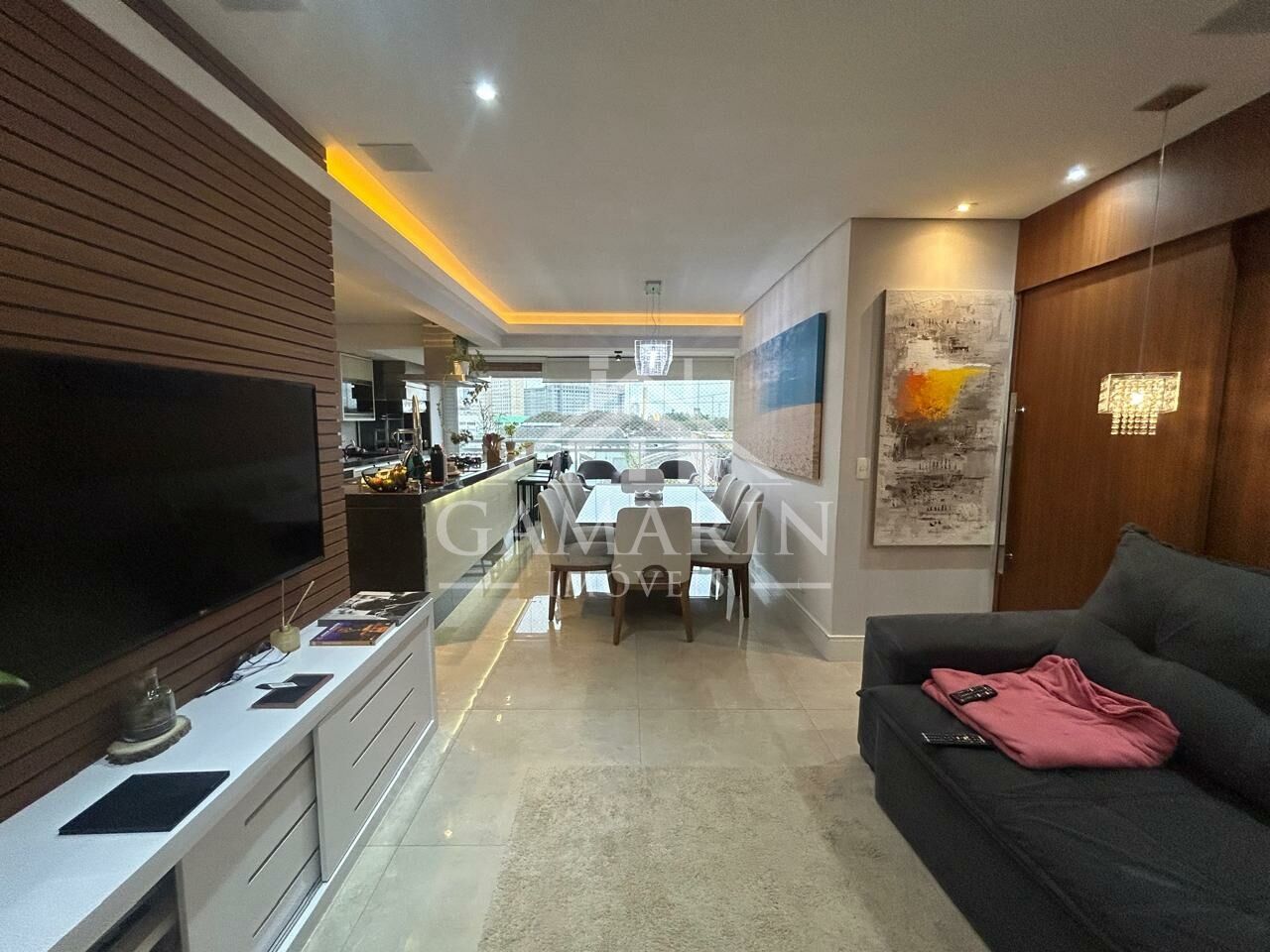 - Sala ampla para dois ambientes, com varanda integrada